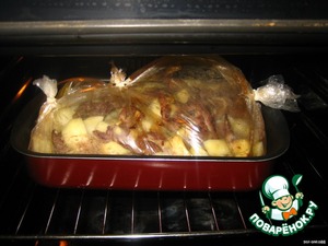 Перемешиваем ингредиенты, добавляем приправы, все складываем в кулек (рукав для запекания)