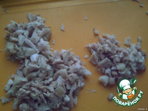 Мелко нарезаем куриное мясо, -