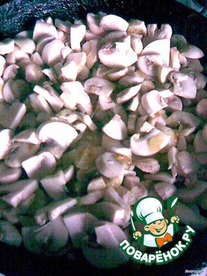 Чистим и мелко режем лук, чистим грибы, режем пластинками -