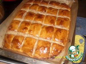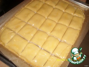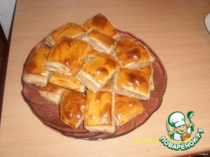 Разделяем пирожок на кусочки по надрезам. Вот и всё, наша "пахлава" готова.