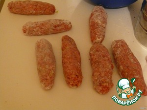 Из фарша сформировать сосиски и запанировать их в муке.