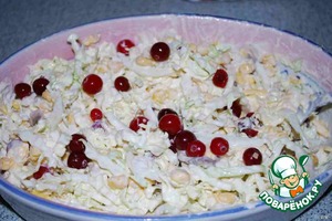 Это блюдо из любимой всеми поварятами серии: "Слепила из того, что было". Ужин уже готов. Мужчины на пороге, но так хочется чего-то легкого. Пришлось на ходу придумывать. Вышло - супер. А клюквочка стала той искоркой, без которой еда пресна и обыденна.