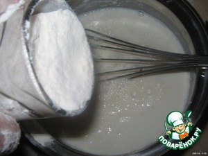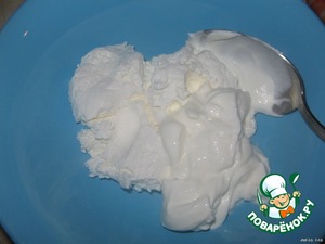 Совсем забыла. Перед тем, как выпекать, нужно добавить в пену взбитые белки (они у нас в холодильнике стояли). -