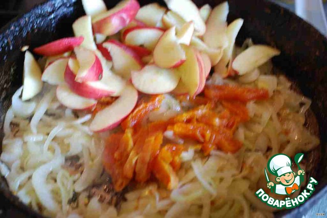 Ингредиенты для «Печень, томленная в вине с яблоками»: