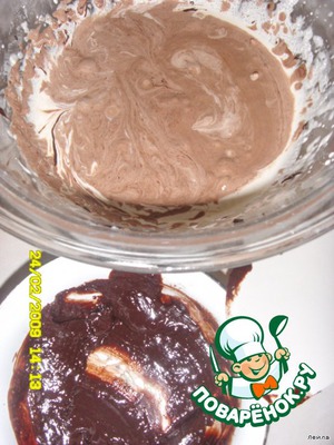 • В мисочку налить молоко и положить шоколад, разломанный на кусочки, растопить, вымешать до однородного состояния,