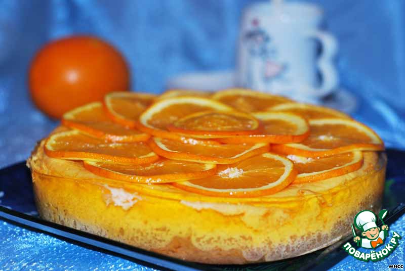 Чизкейк остудить, выложить на тарелку, украсить кружками апельсинов. -