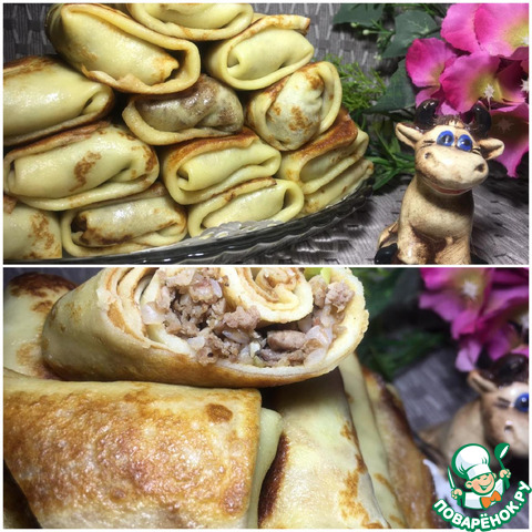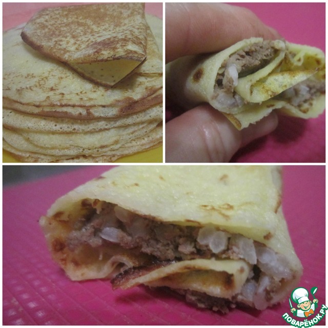 Рецепт «Блины тонкие, фаршированные сердцем»: