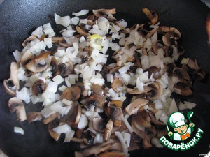 Затем порезанный кубиками перец и опята. Посмотрите какая КРАСОТА!!!