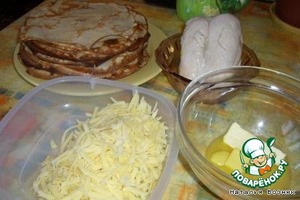 Ингредиенты для «Блинчики с курятинкой, сыром и соусом»: