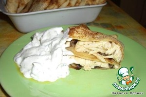 Рецепт «Блинчики с курятинкой, сыром и соусом»: