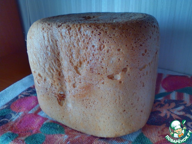 Рецепт из инструкции к моей хлебопечке (LG). Хлебушек вкусный, с плотным мякишем... Подойдет и к другим моделям печек. Ингредиенты даны на большую булку - 900 грамм, составляющие для меньших булок будут выложены на форуме. Предвосхищая вопросы, скажу сразу, что на фотографии рядом с хлебом стоит апельсиновый джем, сваренный также в ХП, конечно же :-)