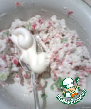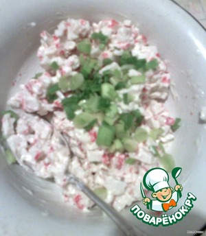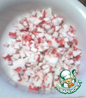 Нарезаем крабовые палочки... -