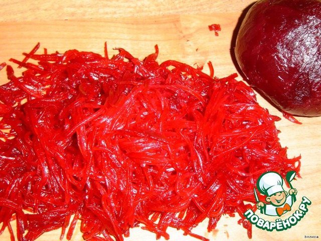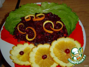 Это один из вариантов салата из свеклы. Мы употребляем его на десерт, он очень нежный и вкусный. Советую попробовать!