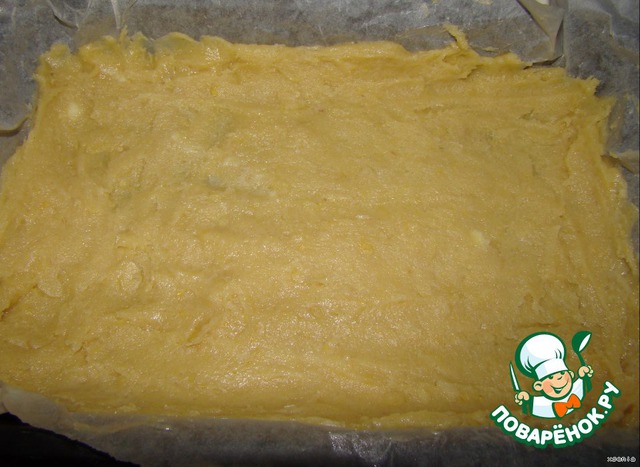 Тесто поставьте на 15 минут в холодильник... затем раскатаем и выкладываем в форму, застеленую пергаментной бумагой...