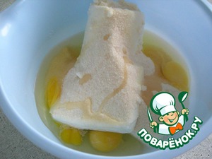 • В миску кладем творог. Я всегда для запеканки покупаю творог в пачках - так его есть не будешь, а для запеканки он идеален, так как в нем полностью отсутствуют комочки, а это, согласитесь, немаловажно :-)
