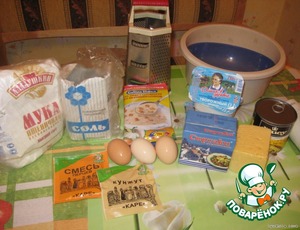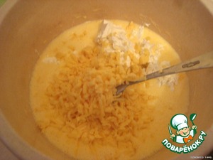 В смесь добавляем Фету и натираем твёрдый сыр.