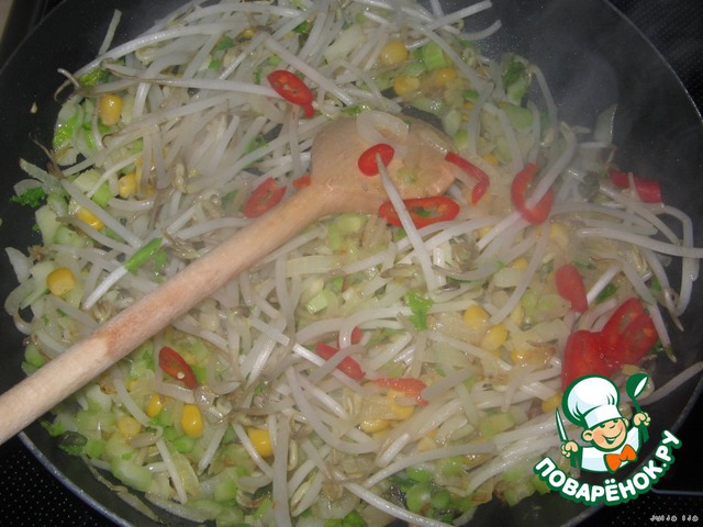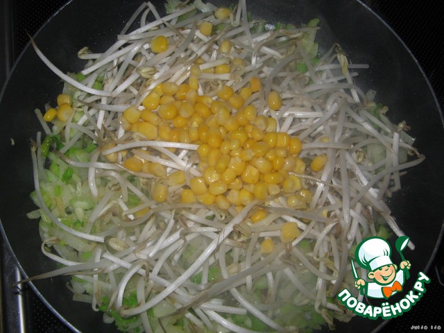 А я все думала, куда же мне ростки фасоли приспособить и кальмаров очень уж люблю, так что попробуем обязательно!!!