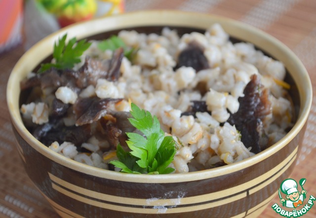 Перловку вымыть, залить водой и поставить вариться. Варить около 2ух часов. Посолить по вкусу.