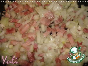 Растопить сало в горячем растительном масле.Добавить лук и потушить до прозрачного состояния.