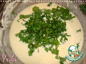 Взбить сметану и яйца(как угодно,руками или миксером),посолить,поперчить.Подмешать петрушку.