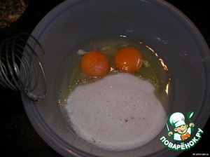 Соединить взбитые яйца с растопленным маргарином, сметаной, мукой, содой, орехами.