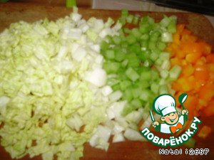 Пекинскую капусту, болгарский перец и сельдерей нарезать кубиком.