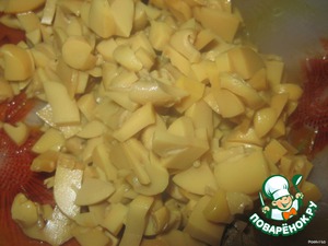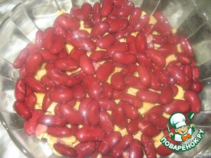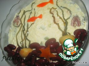 Украшаем фасолью и разрезанным грибом - "камушки", морской капустой - "водоросли".