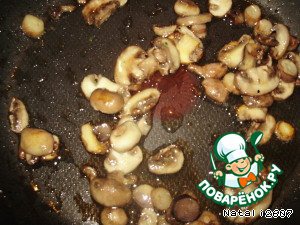 Шампиньоны нарезать соломкой и обжарить на растительном масле до золотистой корочки.