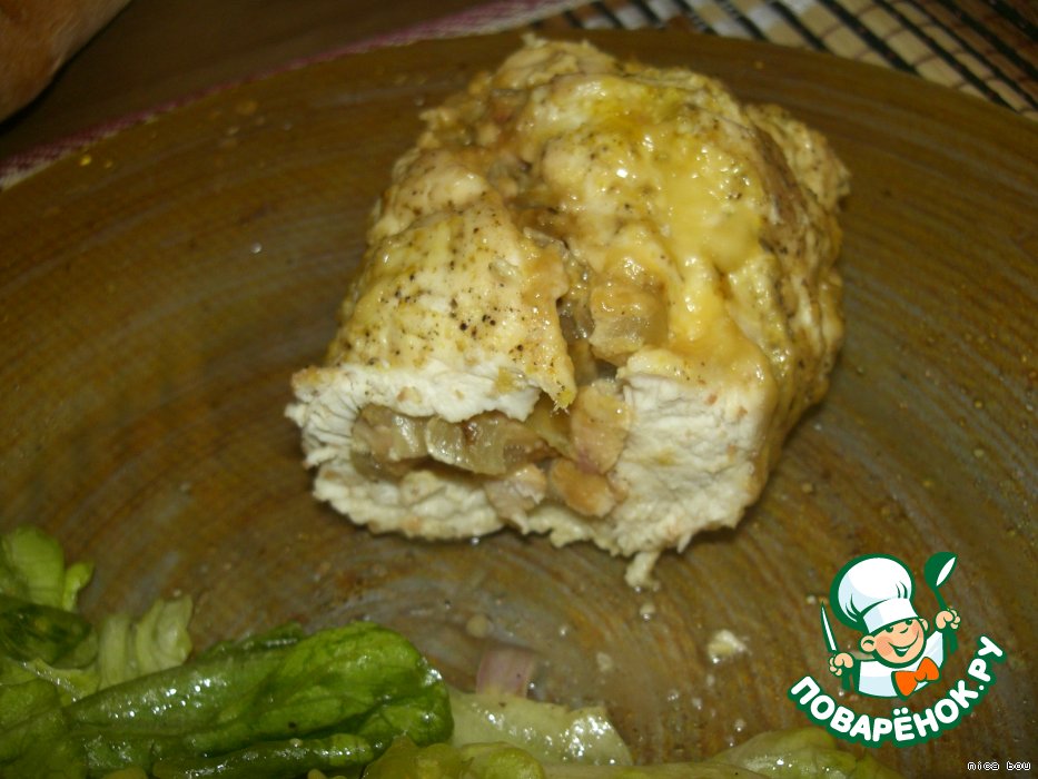 Куриное филе, запеченное с начинкой. Порционное блюдо, симпатично смотрится, подойдет как для повседневного, так и для праздничного стола.