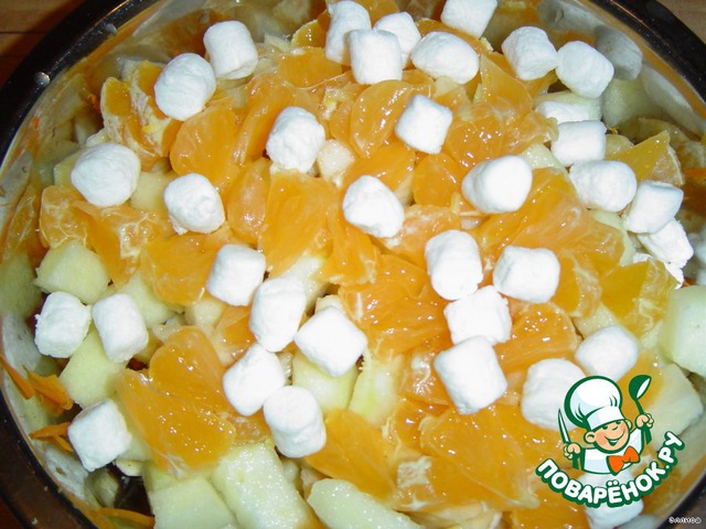 Добавляем нарезанный мандарин.