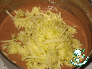 Яблоко очистить от шкурки и натереть на крупной терке, либо порезать тонкой соломкой или натереть на корейской терке.