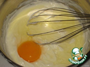 Сливочный сыр слегка взбить с йогуртом, по одному добавить яйца, также слегка взбивая, без фанатизма. Миксер тут не понадобится, можно все сделать вилкой или ручным венчиком.