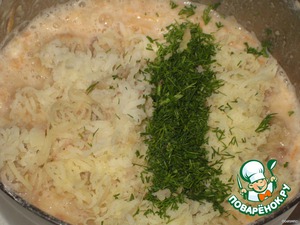 В массу добавить муку, вареный картофель, масло и укроп, все хорошо перемешать и оставить на 20 минут.