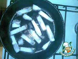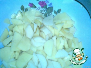 Тем временем режем картошку. Можно соломкой, но у нас любят дольками