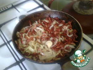 Добавляем лук и жарим 5 минут -