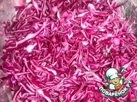 Нашинковать краснокочанную капусту, присыпать солью и хорошо помять руками. |