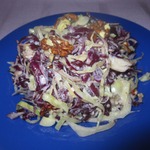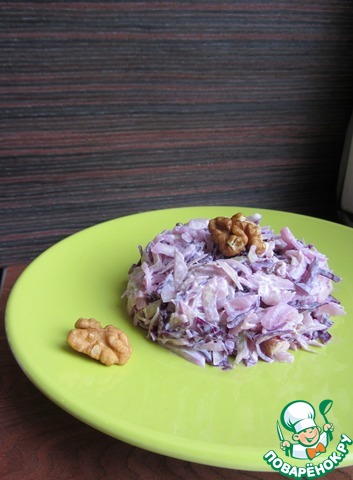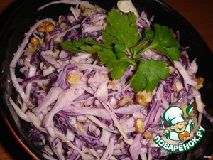 Описание: Зима уже сдает свои позиции, а весна еще не вступила в свои права. В такой период наш организм просит, нет, скорее требует витаминов, и побольше!!! Весенние овощи пока еще не особо доступны, значит, будем мастерить салатик из того, что есть сейчас. Два вида капусты - краснокочанная и белокочанная, орешки и заправочка. Вкусно, просто и витаминов много!