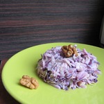 Добавить нашинкованную белокочанную капусту, перемешать. Посыпать крупно порубленными грецкими орехами. |