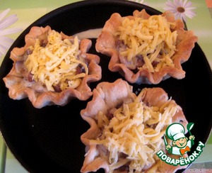 Сверху посыпаем тёртым сыром. И отправляем в духовку при 180 градусах на 15 минут.