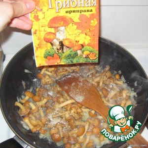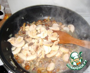 Добавляем шампиньоны и обжариваем ещё минут 5.