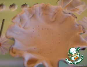 Раскатываем слоёное тесто, опускаем его в формочки, делаем проколы вилкой.