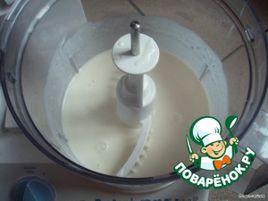 Два стакана йогурта хорошо взбиваем. Если у вас йогурт нежирный (у меня такой был), да и для перестраховки, чтобы при варке йогурт не свернулся, добавим в него 3 ч. л. муки (или крахмала) и хорошо перемешать, чтобы не было комочков. -