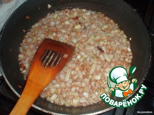 Как это случится, жарим все еще пару минут, теперь уже помешивая все время. Добавляем еще около 4 ложек воды, даем ей выкипеть опять и тогда вливаем 3 стакана воды, даем закипеть и варим на слабом огне около десяти минут. -