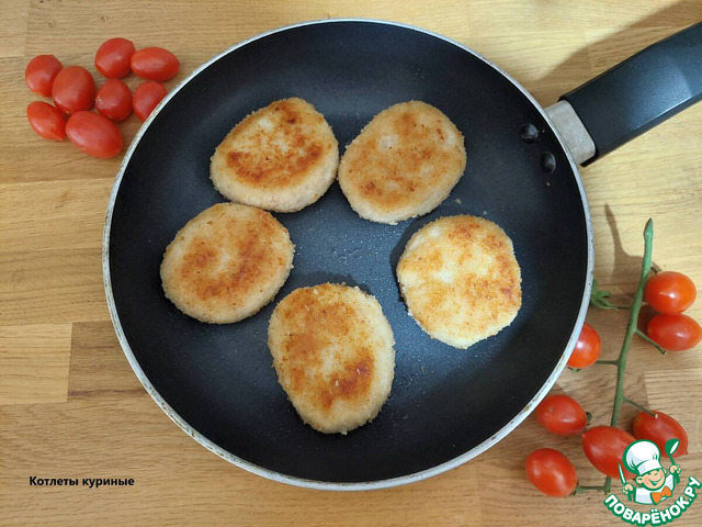 Сформировать котлеты, обвалять в панировочных сухарях.