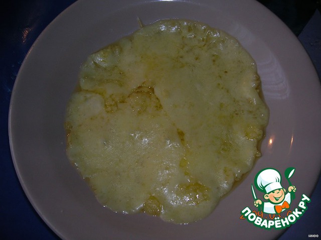 "Блин" из расплавленного сыра, надеваем на перевёрнутый стакан и ждём, когда застынет.