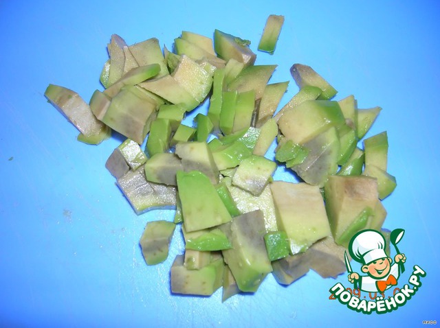 Авакадо чистим, режем мелкими кубиками.