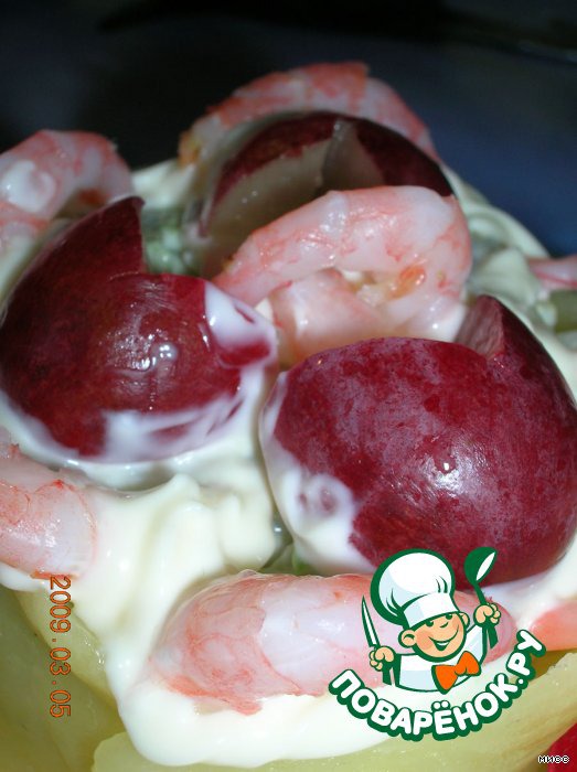 Креветки чистим, выкладываем сверху салата.