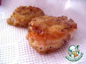 • Пожарить в раскаленном масле примерно 4 минуты до золотистого цвета. Высушить на салфетке – лишний жир надо убрать.