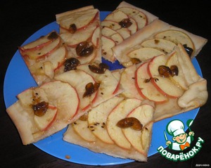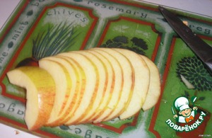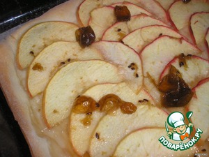 Яблоки выложить на тесто. Сверху помазать джемом или вареньем. Очень вкусно с абрикосовым джемом. Но у меня его не было, поэтому сделала с Царским вареньем (из крыжовника).