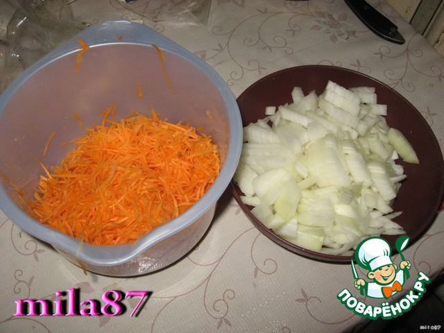 Чистим, моем и режем лук и морковь.